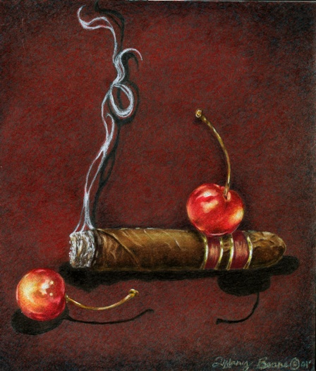 Seduction is a piece of art that came from a simple interest in the texture of a cigar and the equally amazing haze that flows forth once lit. The cherries are a mouth watering delight. As is the cigar for so many men. What the two subjects combined together elude to I will leave up to the view.