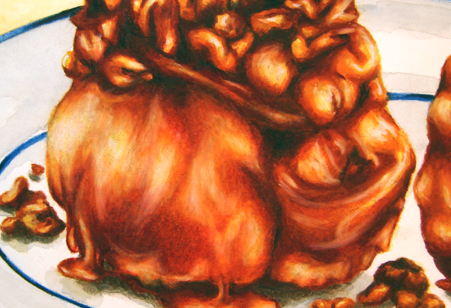 A rare treat for an early morning. I loved the glazed thickness of this sweet bun. And yet the contrast of the crunchy nuts on top seems to complement the soft gooeyness of this bun. Again, I marvel at just how many textures and color variations that are found in food that we pay little to no attention to every day.